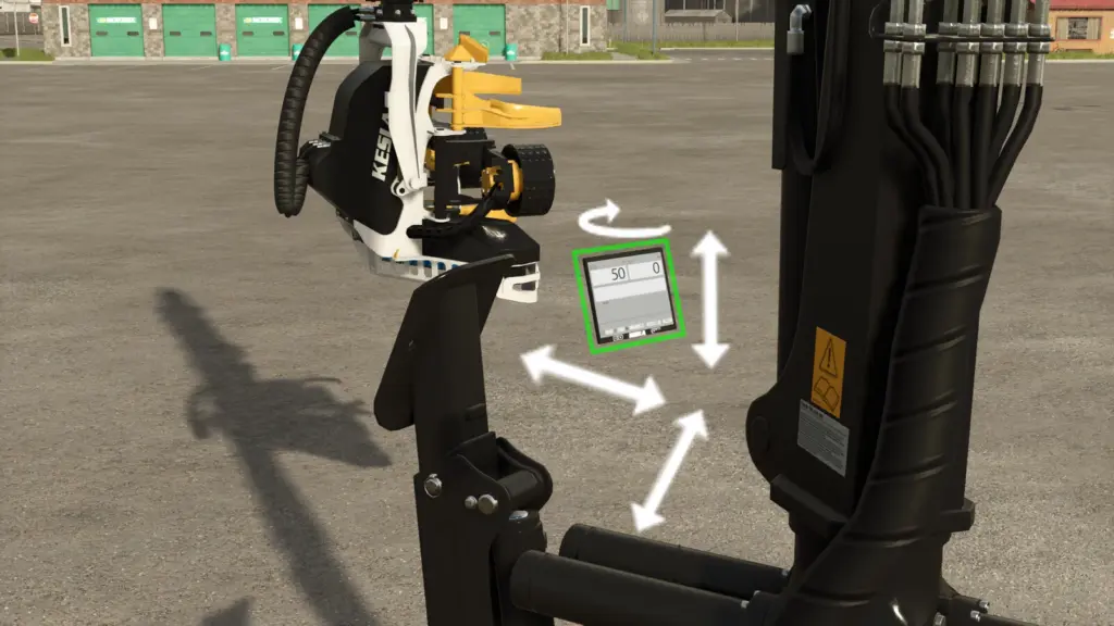 Nach dem Ankuppeln erscheint hinter dem Kran ein Display, um es optisch im Fahrzeug zu platzieren, kann es über die 2. Steuergruppe frei bewegt werden.
